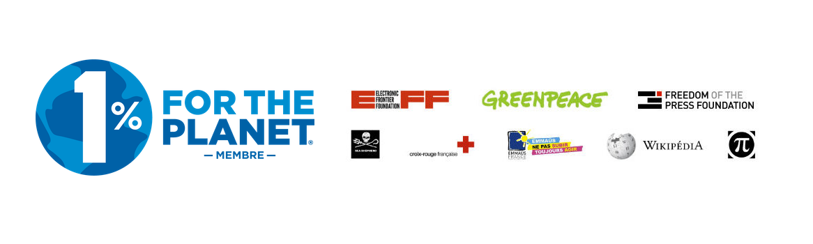 Afin de concrétiser nos engagements et les mutualiser avec d’autres initiatives nous participons au collectif 1% pour la planète en reversant 1% de notre chiffre d’affaire pour différentes associations impliquées dans la sauvegarde de notre environnement et la lutte contre le réchauffement climatique.